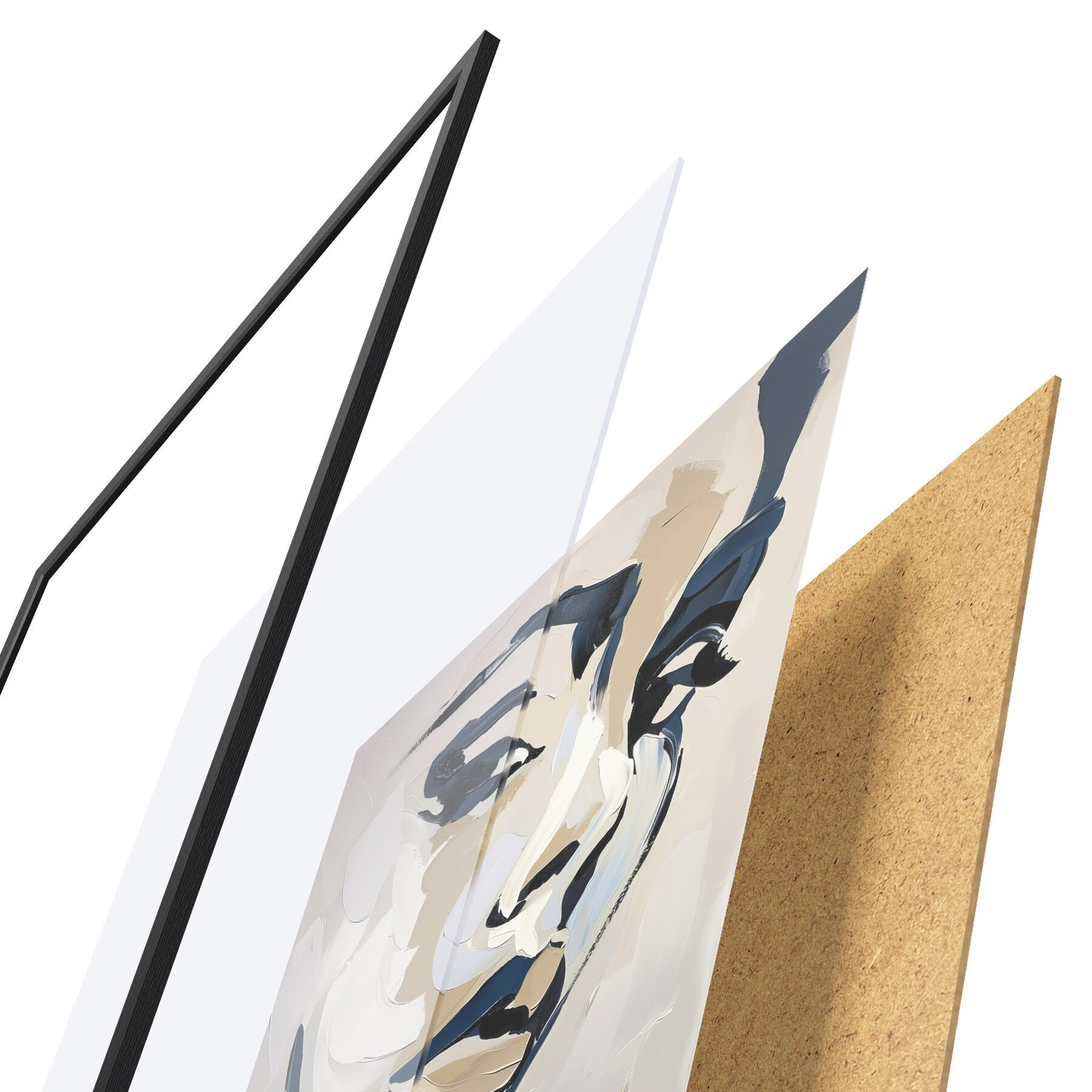 L’affiche encadrée est composée d’un cadre, d’un plexiglas, d’une image imprimée et d’un support en aggloméré. Elle est prête à être accrochée au mur grâce aux fixations situées à l’arrière.