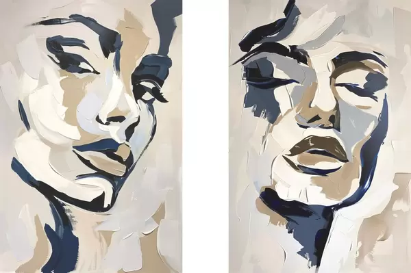 Poster Visages abstraits de femmes avec des coups de pinceau imités Nr d00713