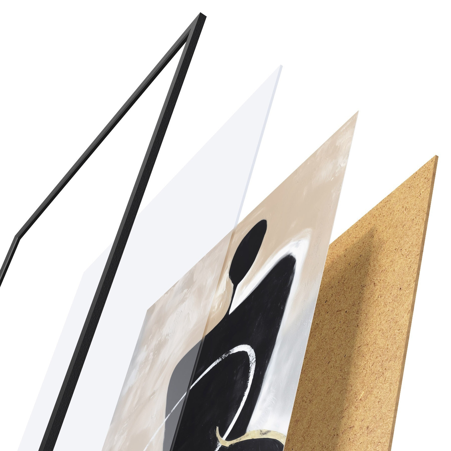 L’affiche encadrée est composée d’un cadre, d’un plexiglas, d’une image imprimée et d’un support en aggloméré. Elle est prête à être accrochée au mur grâce aux fixations situées à l’arrière.