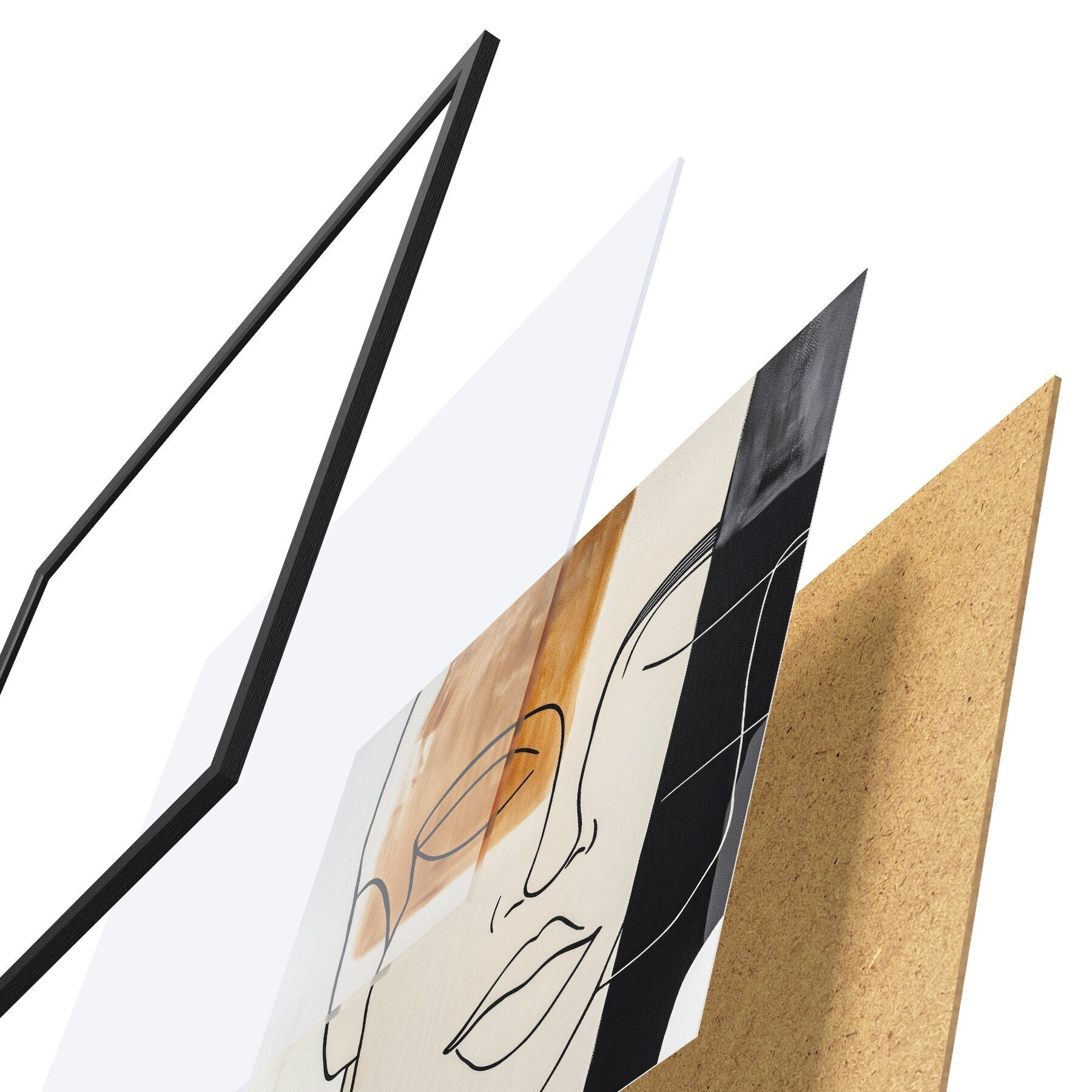L’affiche encadrée est composée d’un cadre, d’un plexiglas, d’une image imprimée et d’un support en aggloméré. Elle est prête à être accrochée au mur grâce aux fixations situées à l’arrière.