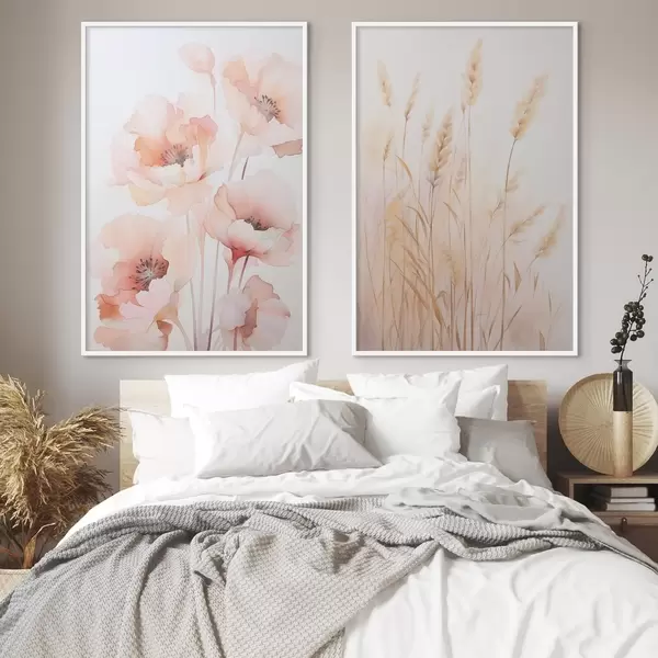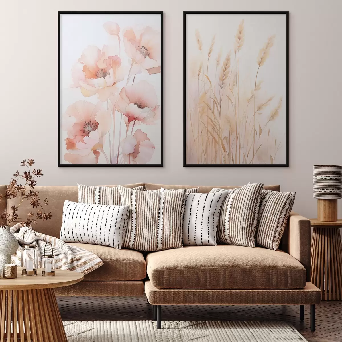 Poster Imitation aquarelle de coquelicots et d'épillets d00723