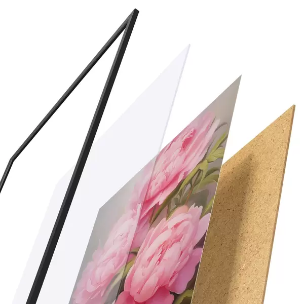 L’affiche encadrée est composée d’un cadre, d’un plexiglas, d’une image imprimée et d’un support en aggloméré. Elle est prête à être accrochée au mur grâce aux fixations situées à l’arrière.