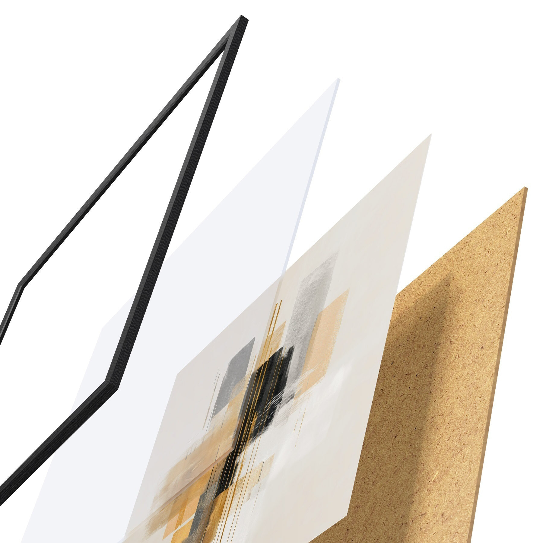 L’affiche encadrée est composée d’un cadre, d’un plexiglas, d’une image imprimée et d’un support en aggloméré. Elle est prête à être accrochée au mur grâce aux fixations situées à l’arrière.