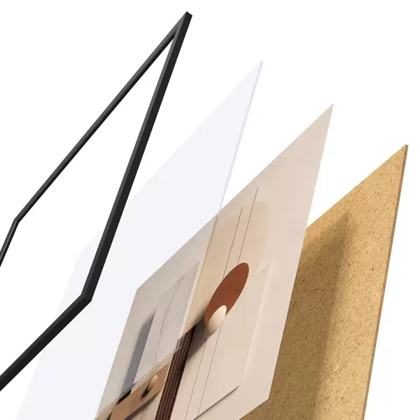 L’affiche encadrée est composée d’un cadre, d’un plexiglas, d’une image imprimée et d’un support en aggloméré. Elle est prête à être accrochée au mur grâce aux fixations situées à l’arrière.