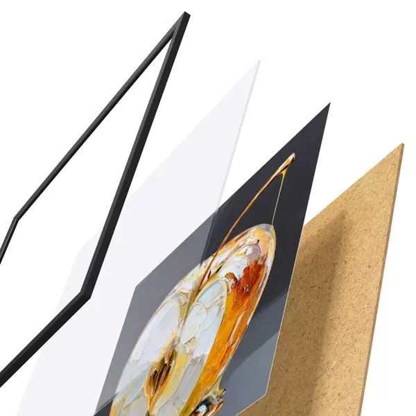 L’affiche encadrée est composée d’un cadre, d’un plexiglas, d’une image imprimée et d’un support en aggloméré. Elle est prête à être accrochée au mur grâce aux fixations situées à l’arrière.