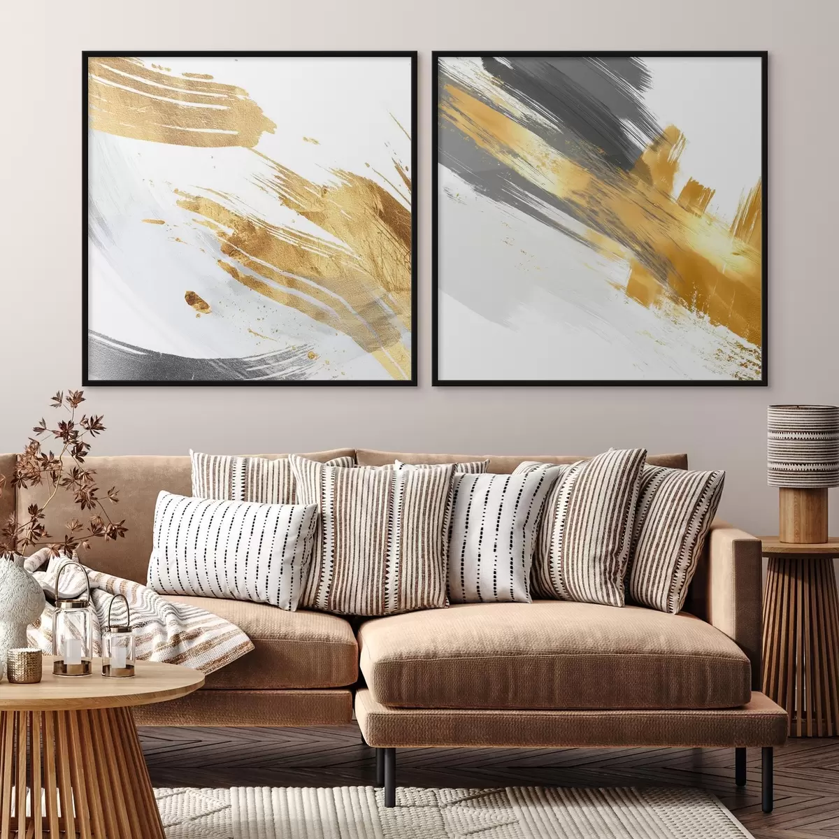 Poster Abstraction dynamique avec des traits jaunes et gris Nr d00748