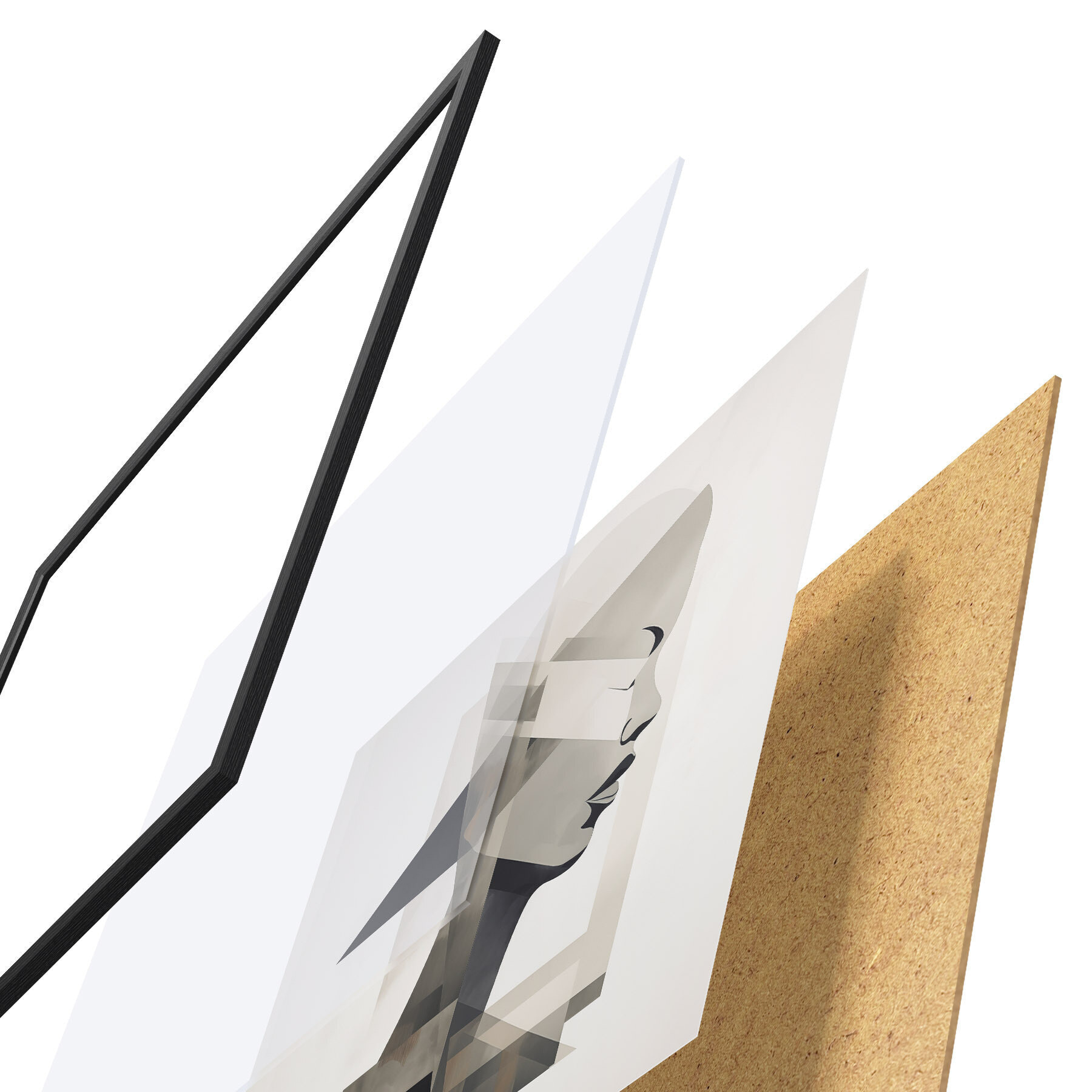 L’affiche encadrée est composée d’un cadre, d’un plexiglas, d’une image imprimée et d’un support en aggloméré. Elle est prête à être accrochée au mur grâce aux fixations situées à l’arrière.