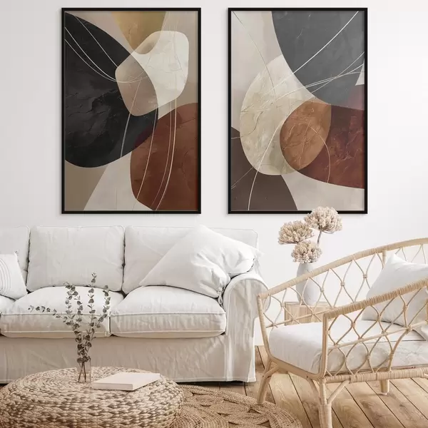 Poster Ovales géométriques dans une palette chaude avec des lignes jaunes Nr d00763
