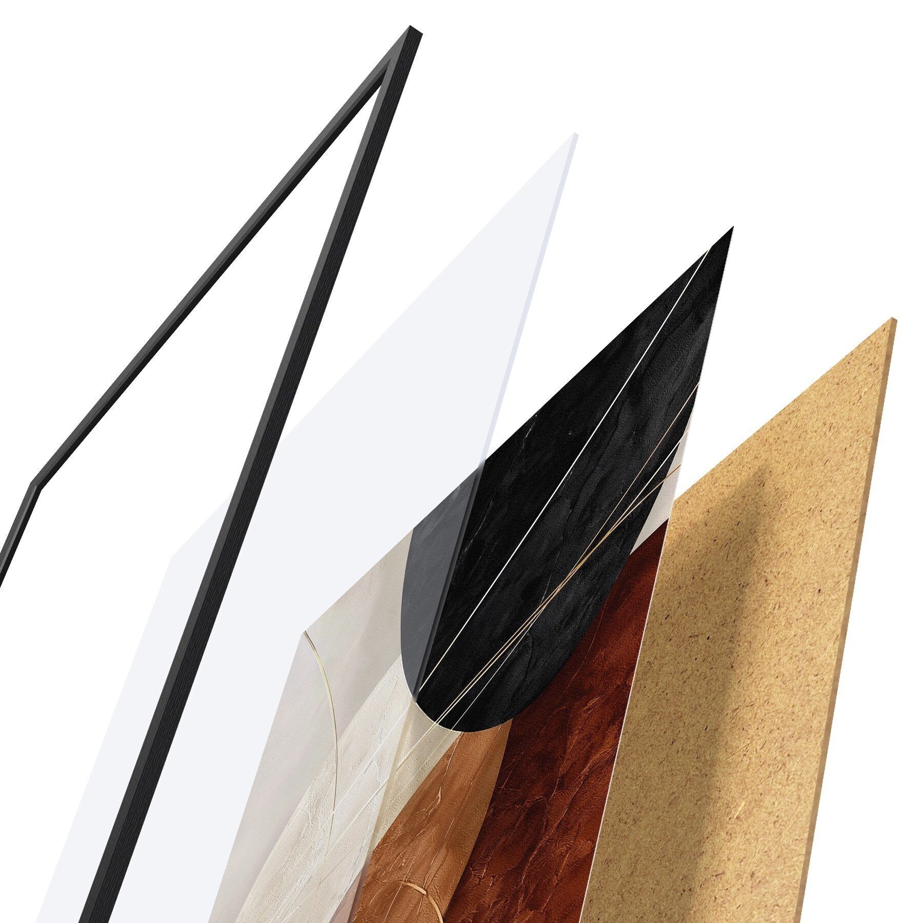 L’affiche encadrée est composée d’un cadre, d’un plexiglas, d’une image imprimée et d’un support en aggloméré. Elle est prête à être accrochée au mur grâce aux fixations situées à l’arrière.
