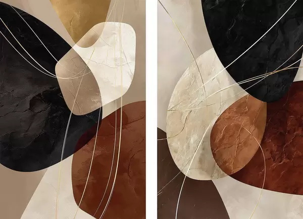 Poster Ovales géométriques dans une palette chaude avec des lignes jaunes Nr d00763