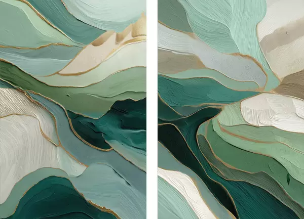 Poster Abstraction en couches émeraude avec un contour jaune Nr d00766