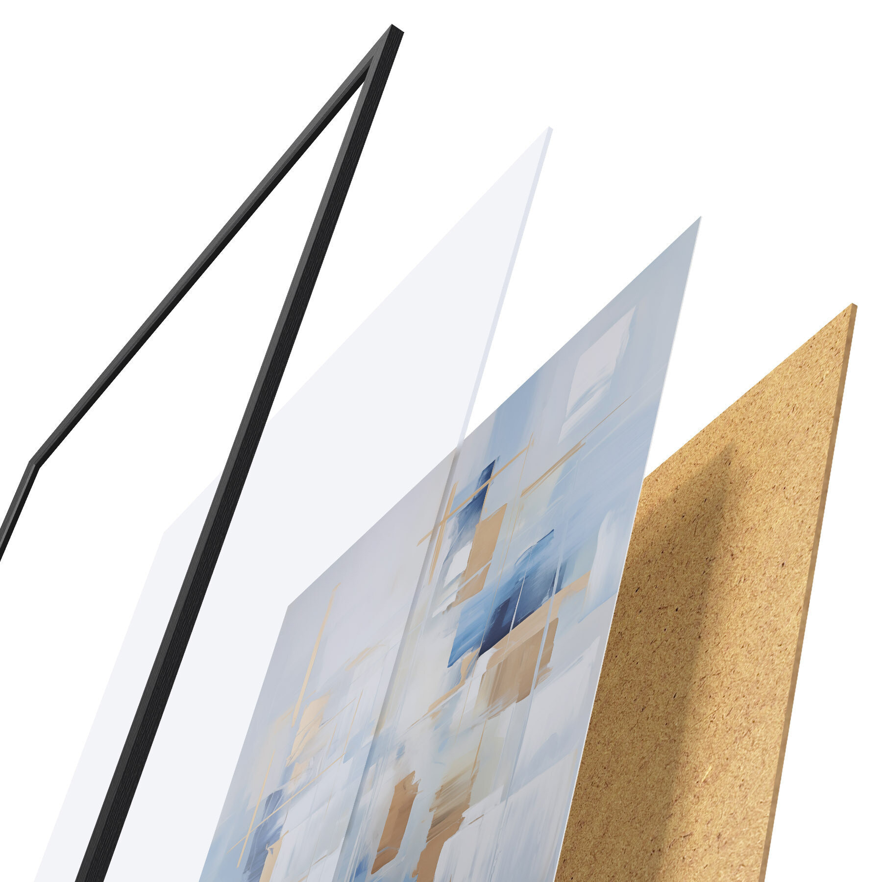 L’affiche encadrée est composée d’un cadre, d’un plexiglas, d’une image imprimée et d’un support en aggloméré. Elle est prête à être accrochée au mur grâce aux fixations situées à l’arrière.