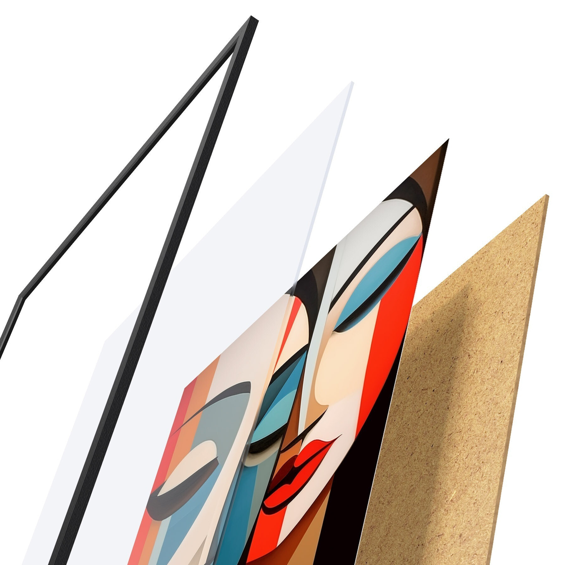 L’affiche encadrée est composée d’un cadre, d’un plexiglas, d’une image imprimée et d’un support en aggloméré. Elle est prête à être accrochée au mur grâce aux fixations situées à l’arrière.