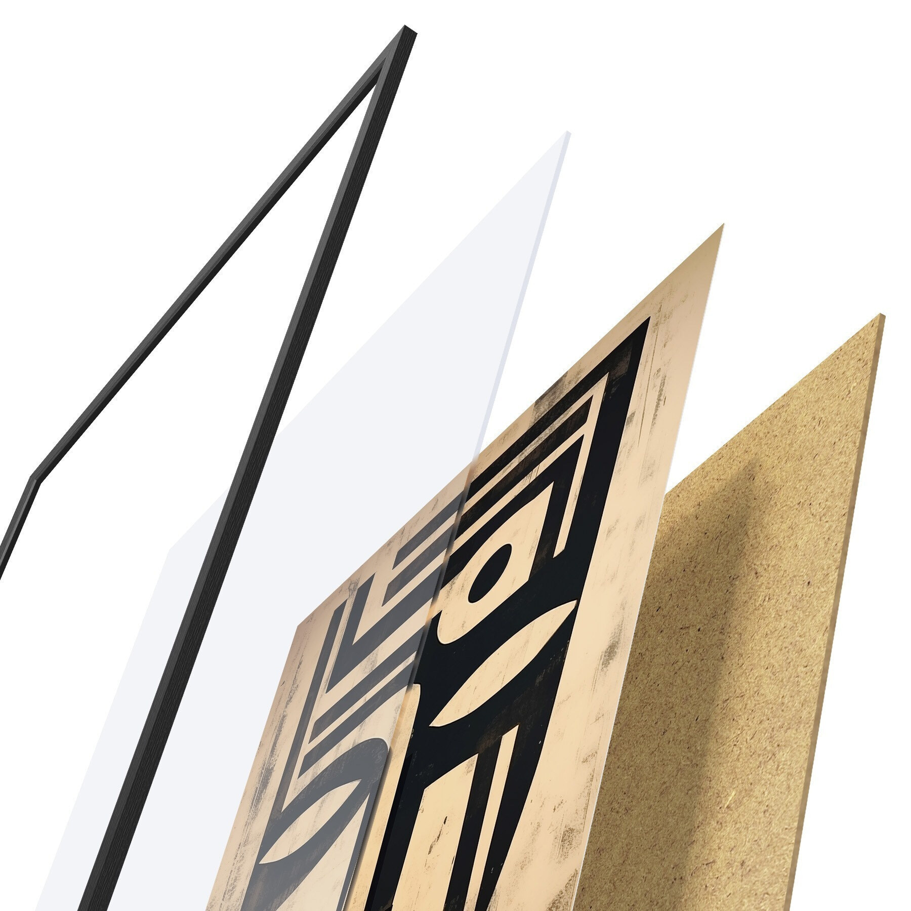 L’affiche encadrée est composée d’un cadre, d’un plexiglas, d’une image imprimée et d’un support en aggloméré. Elle est prête à être accrochée au mur grâce aux fixations situées à l’arrière.