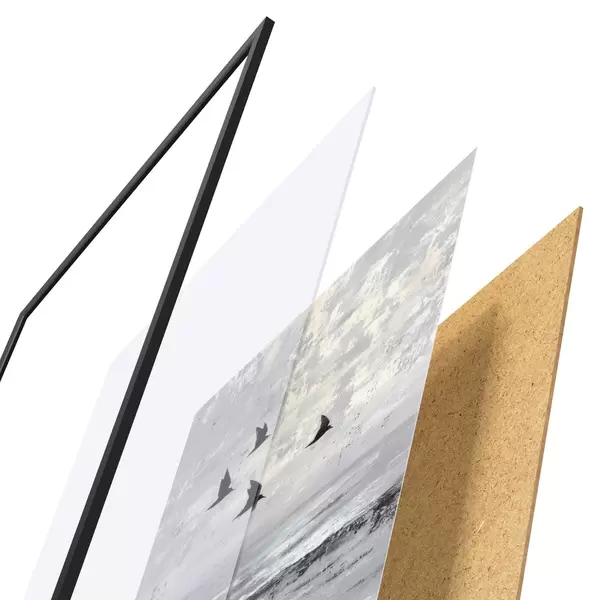 L’affiche encadrée est composée d’un cadre, d’un plexiglas, d’une image imprimée et d’un support en aggloméré. Elle est prête à être accrochée au mur grâce aux fixations situées à l’arrière.