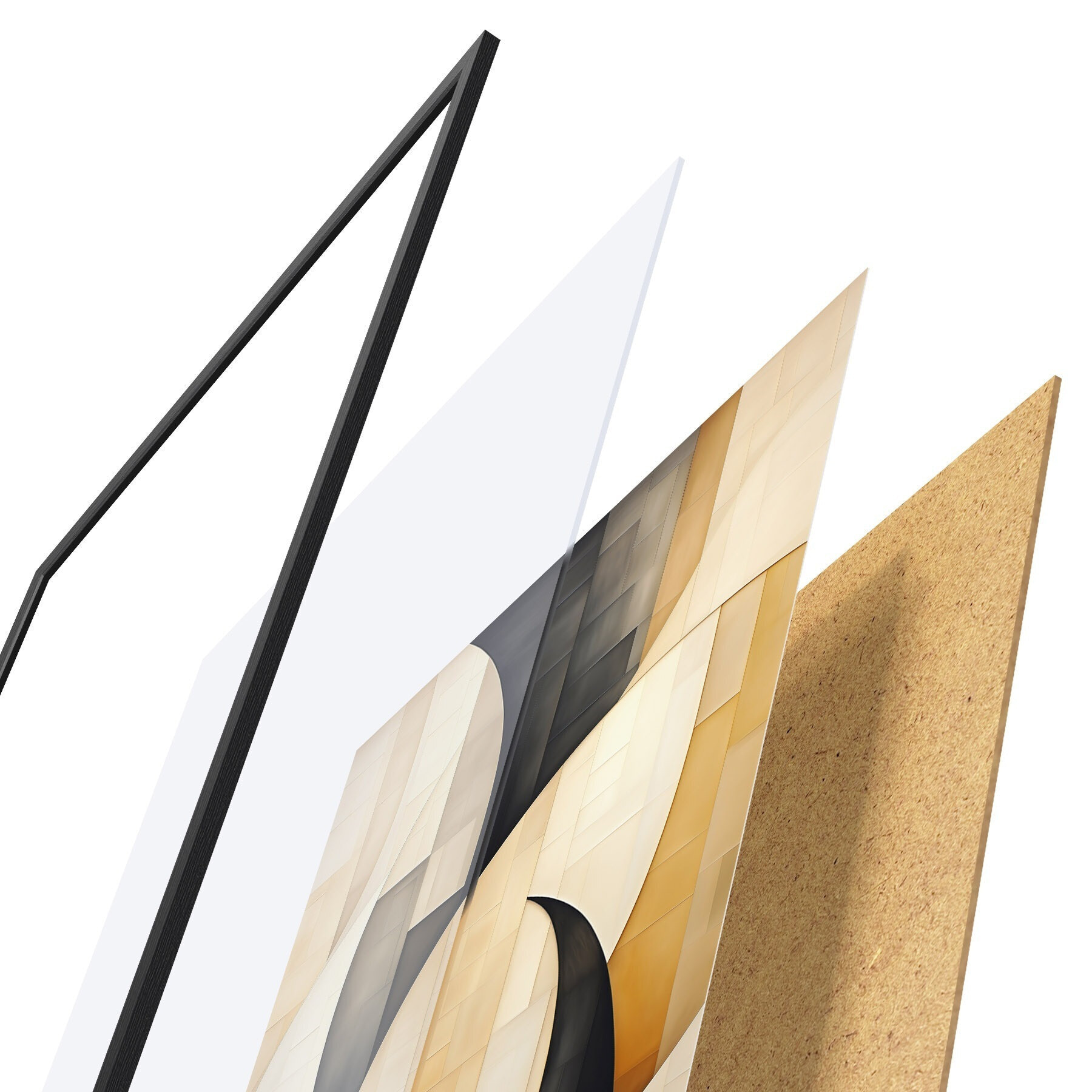 L’affiche encadrée est composée d’un cadre, d’un plexiglas, d’une image imprimée et d’un support en aggloméré. Elle est prête à être accrochée au mur grâce aux fixations situées à l’arrière.