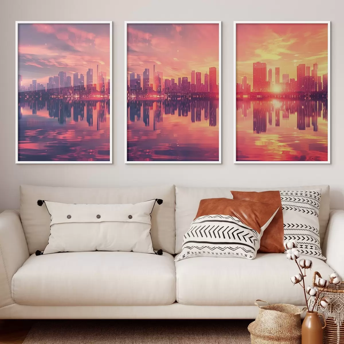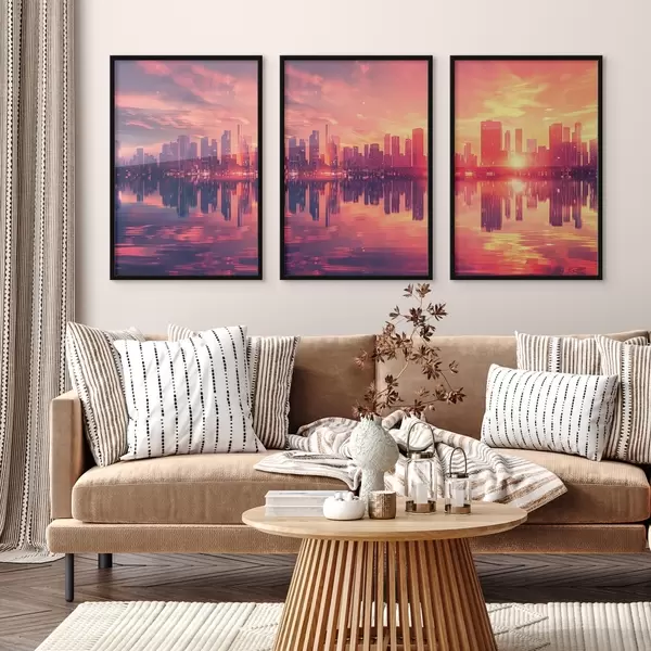 Poster Coucher de soleil romantique avec une ville moderne en arrière-plan d00784