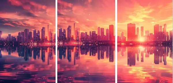 Poster Coucher de soleil romantique avec une ville moderne en arrière-plan Nr d00784