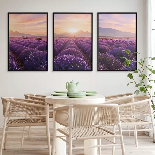 Poster Coucher de soleil dans un champ de lavande Nr d00785
