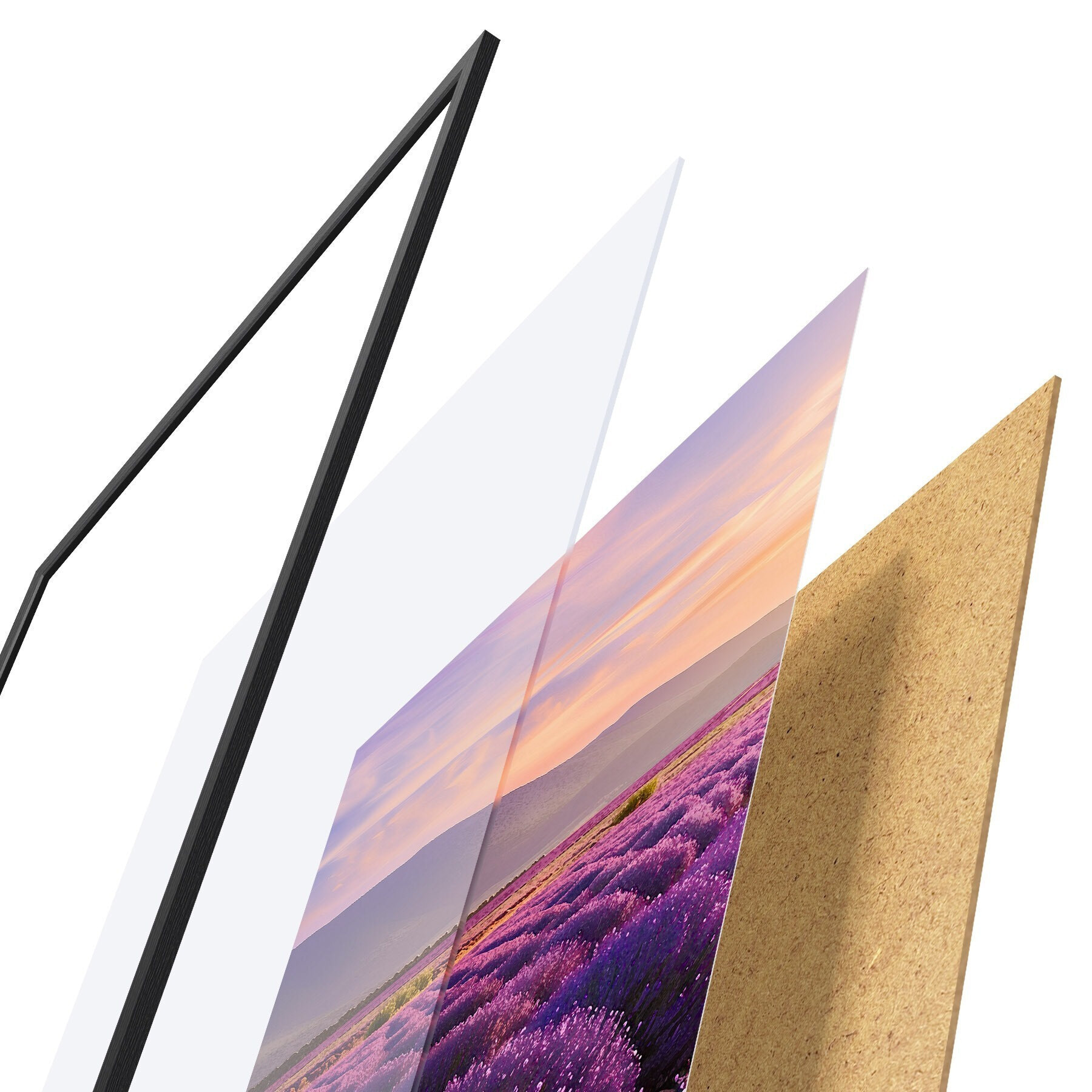 L’affiche encadrée est composée d’un cadre, d’un plexiglas, d’une image imprimée et d’un support en aggloméré. Elle est prête à être accrochée au mur grâce aux fixations situées à l’arrière.