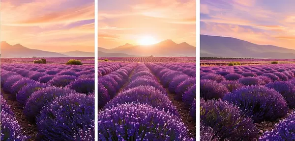 Poster Coucher de soleil dans un champ de lavande Nr d00785