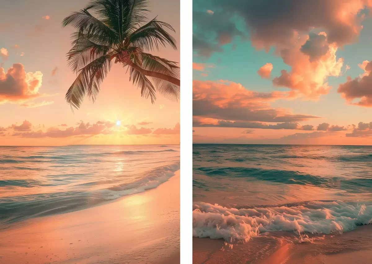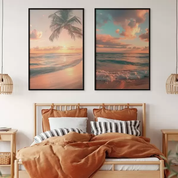 Poster Coucher de soleil sur la côte avec vue sur les vagues Nr d00787