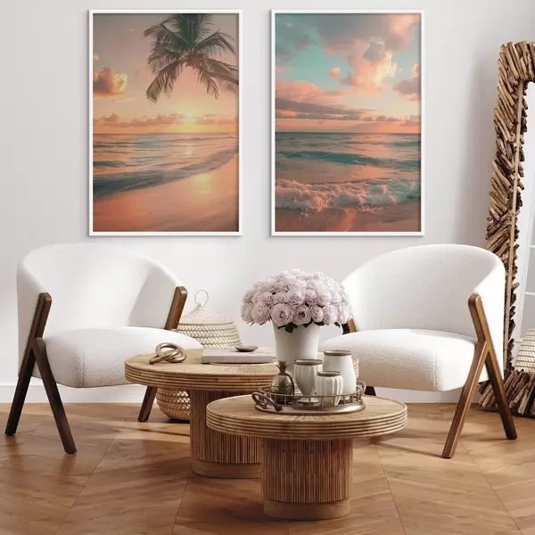 Poster Coucher de soleil sur la côte avec vue sur les vagues d00787