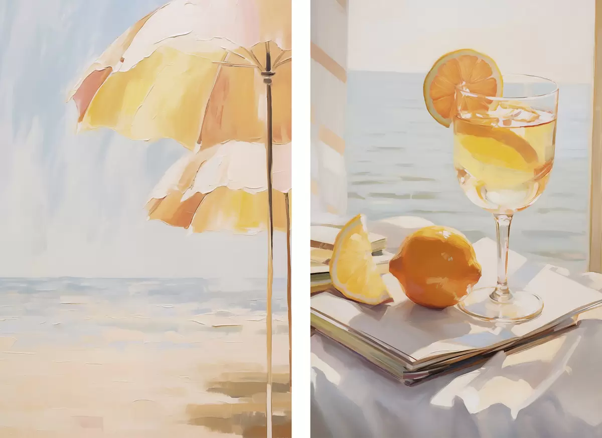 Poster Paysage de plage et cocktail dans un verre Nr d00793