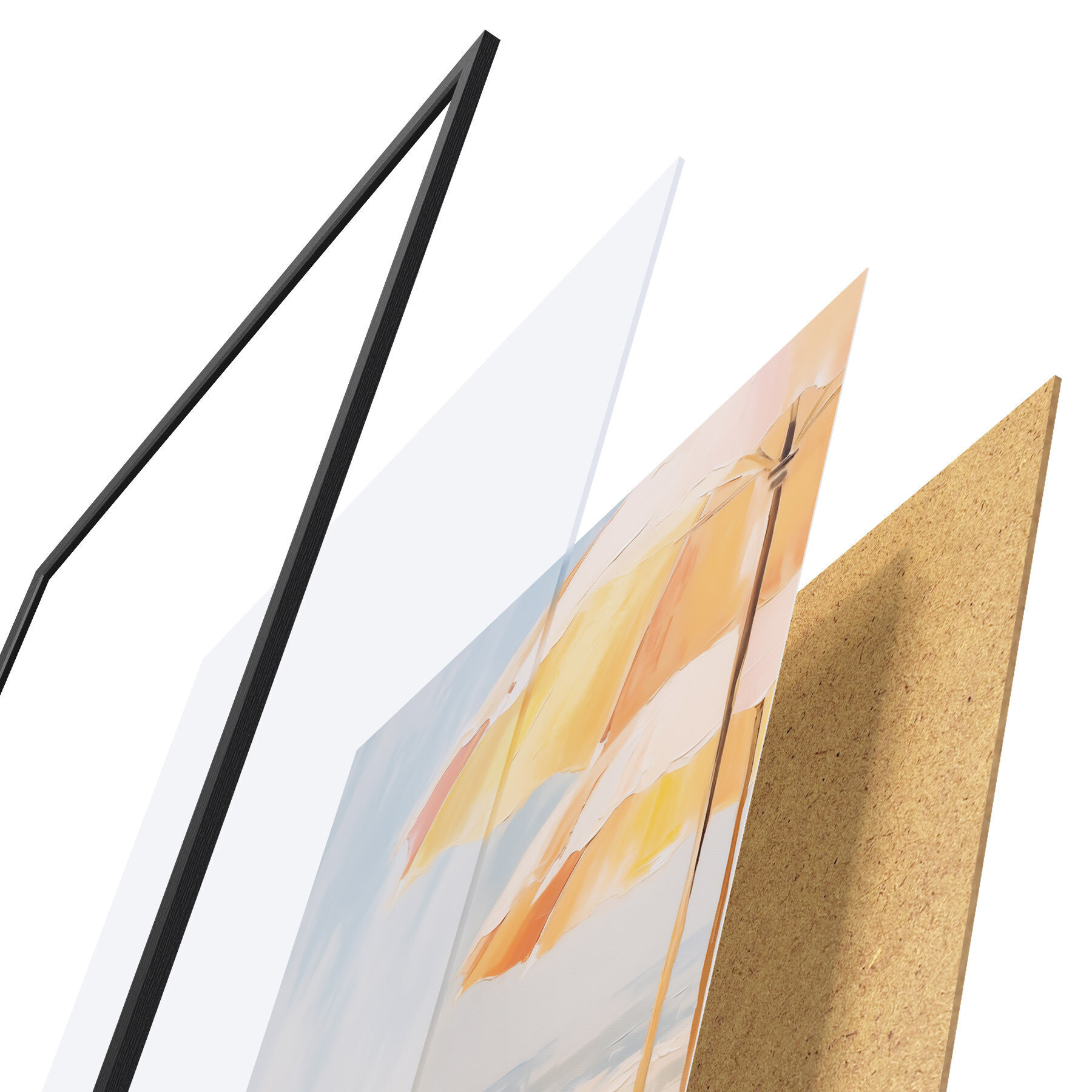 L’affiche encadrée est composée d’un cadre, d’un plexiglas, d’une image imprimée et d’un support en aggloméré. Elle est prête à être accrochée au mur grâce aux fixations situées à l’arrière.