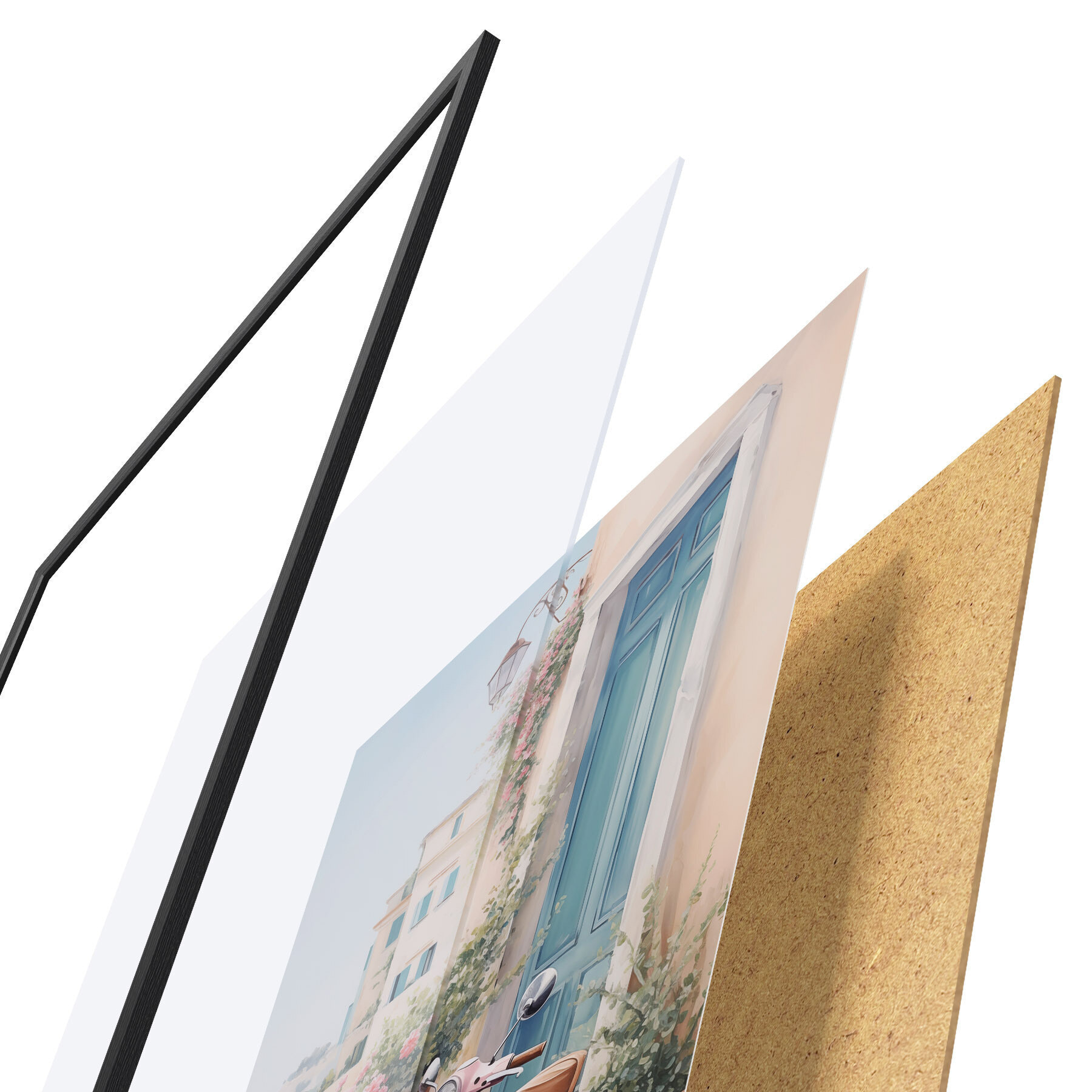 L’affiche encadrée est composée d’un cadre, d’un plexiglas, d’une image imprimée et d’un support en aggloméré. Elle est prête à être accrochée au mur grâce aux fixations situées à l’arrière.
