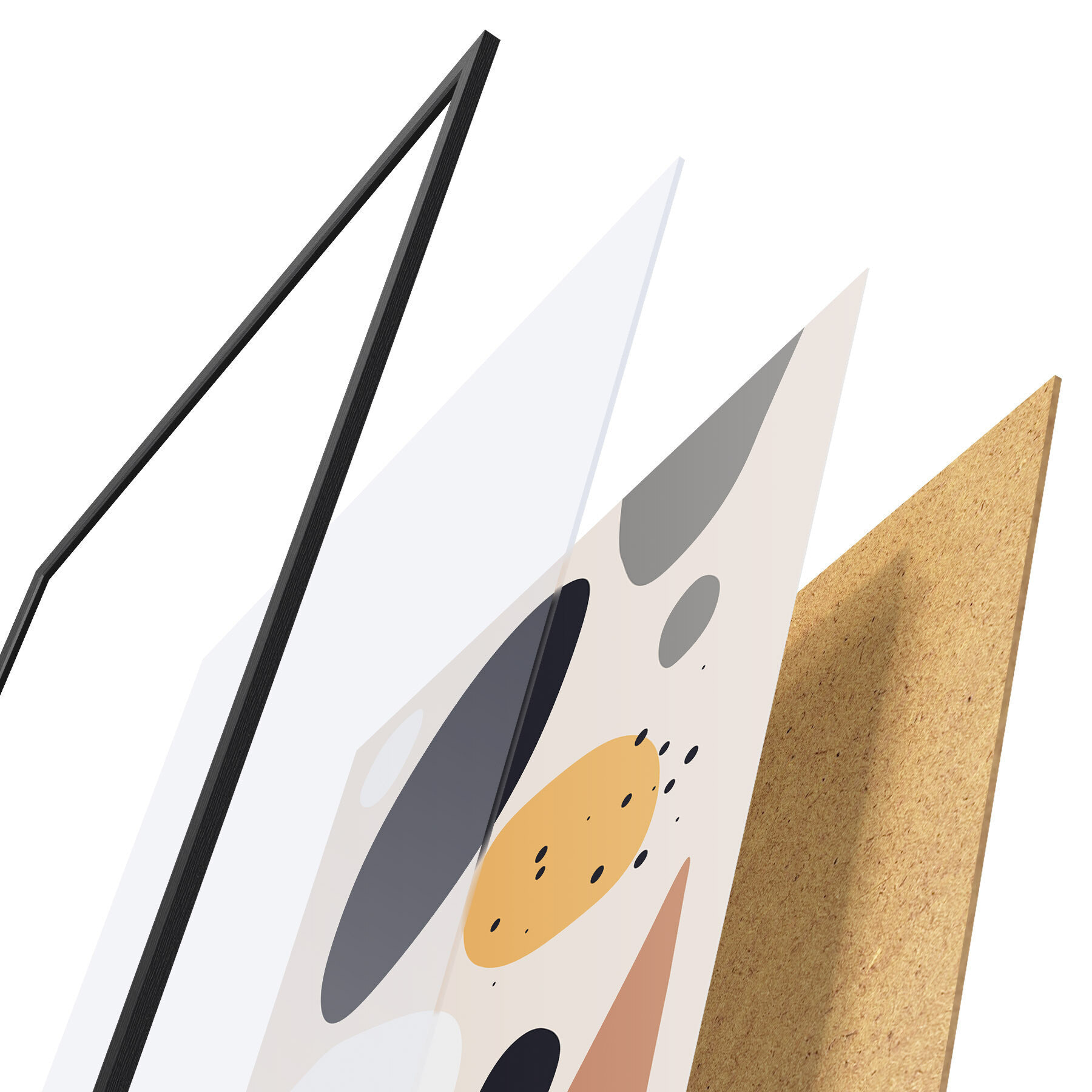 L’affiche encadrée est composée d’un cadre, d’un plexiglas, d’une image imprimée et d’un support en aggloméré. Elle est prête à être accrochée au mur grâce aux fixations situées à l’arrière.