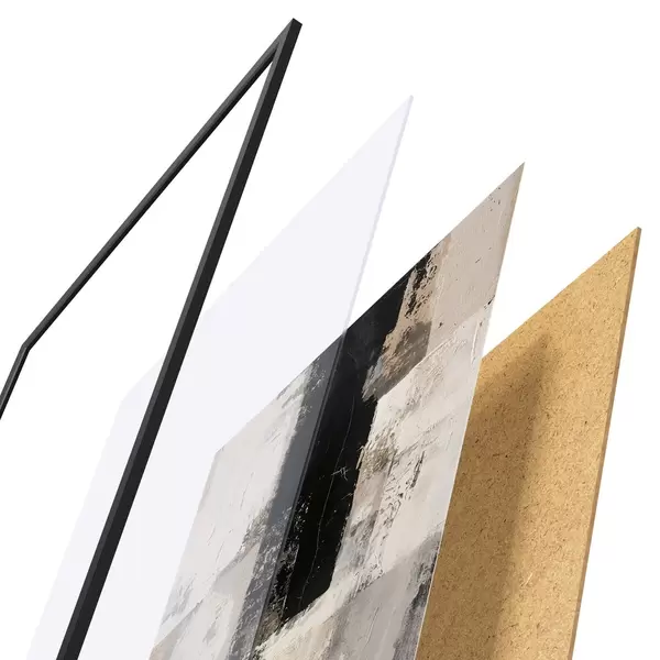 L’affiche encadrée est composée d’un cadre, d’un plexiglas, d’une image imprimée et d’un support en aggloméré. Elle est prête à être accrochée au mur grâce aux fixations situées à l’arrière.