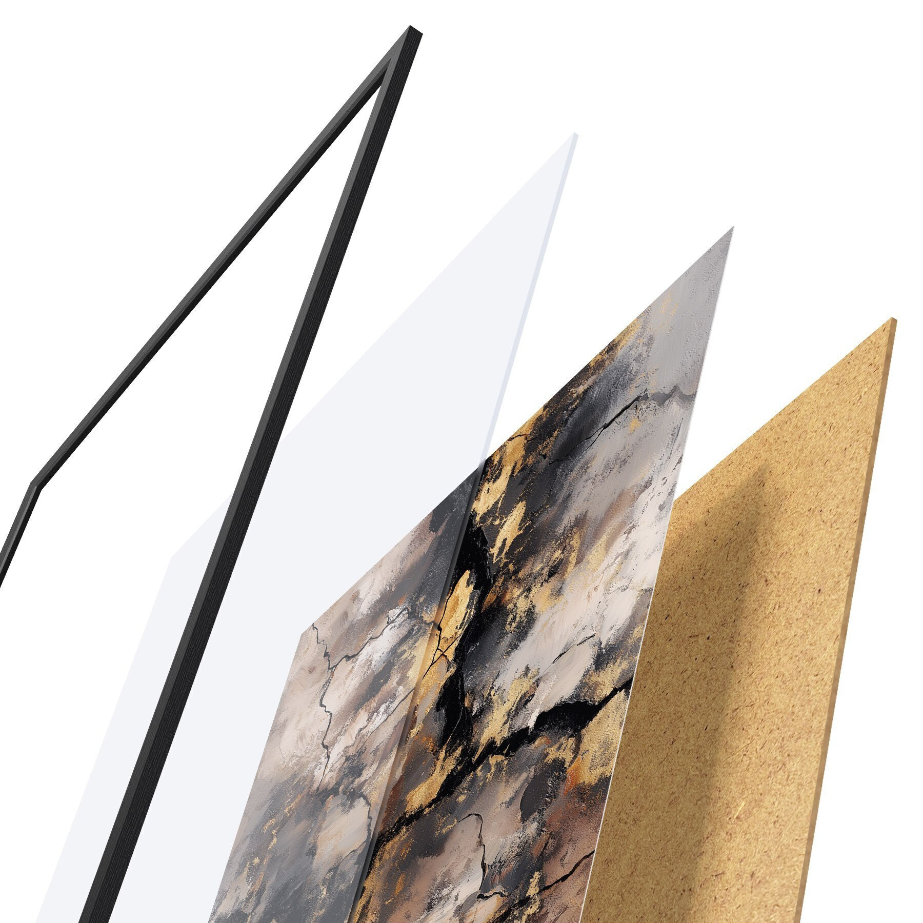 L’affiche encadrée est composée d’un cadre, d’un plexiglas, d’une image imprimée et d’un support en aggloméré. Elle est prête à être accrochée au mur grâce aux fixations situées à l’arrière.