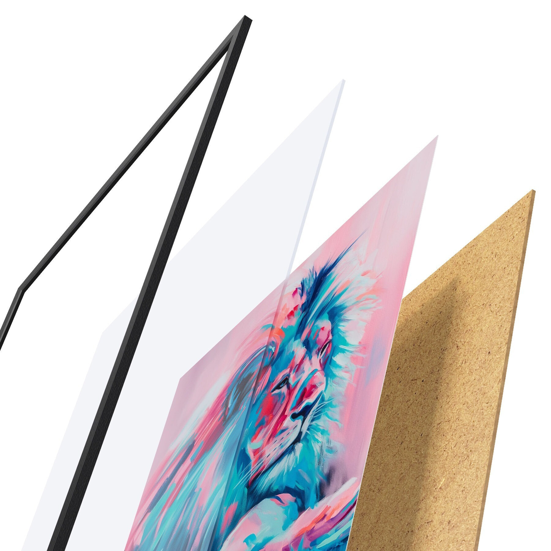 L’affiche encadrée est composée d’un cadre, d’un plexiglas, d’une image imprimée et d’un support en aggloméré. Elle est prête à être accrochée au mur grâce aux fixations situées à l’arrière.