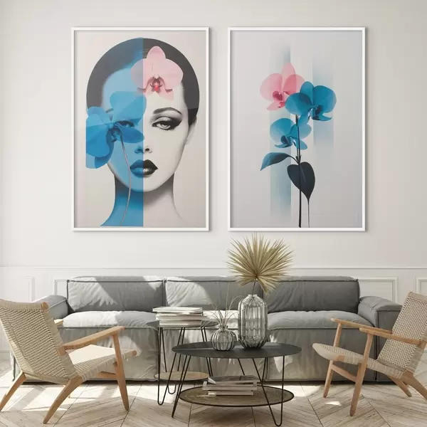Poster Portrait abstrait d'une femme avec des orchidées d00818