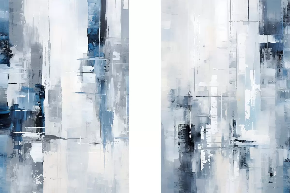 Poster Imitation de peinture abstraite avec des couleurs bleues, grises et blanches, des lignes verticales et des formes géométriques d00819