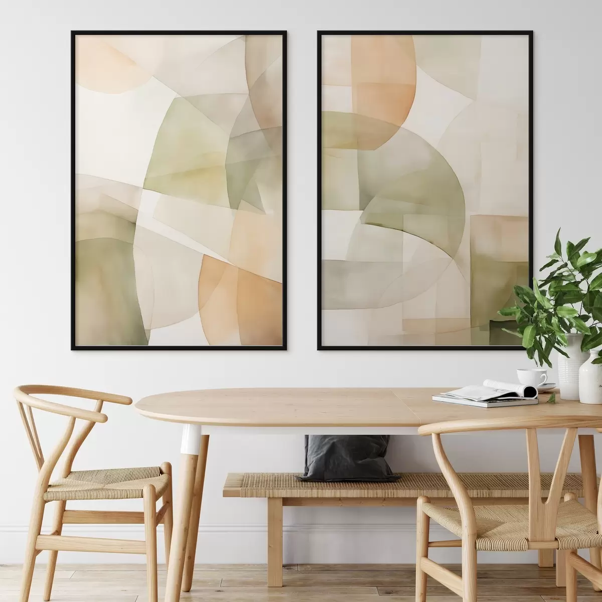 Poster Formes géométriques abstraites texturées à l'aquarelle dans des tons de vert, marron et beige Nr d00820