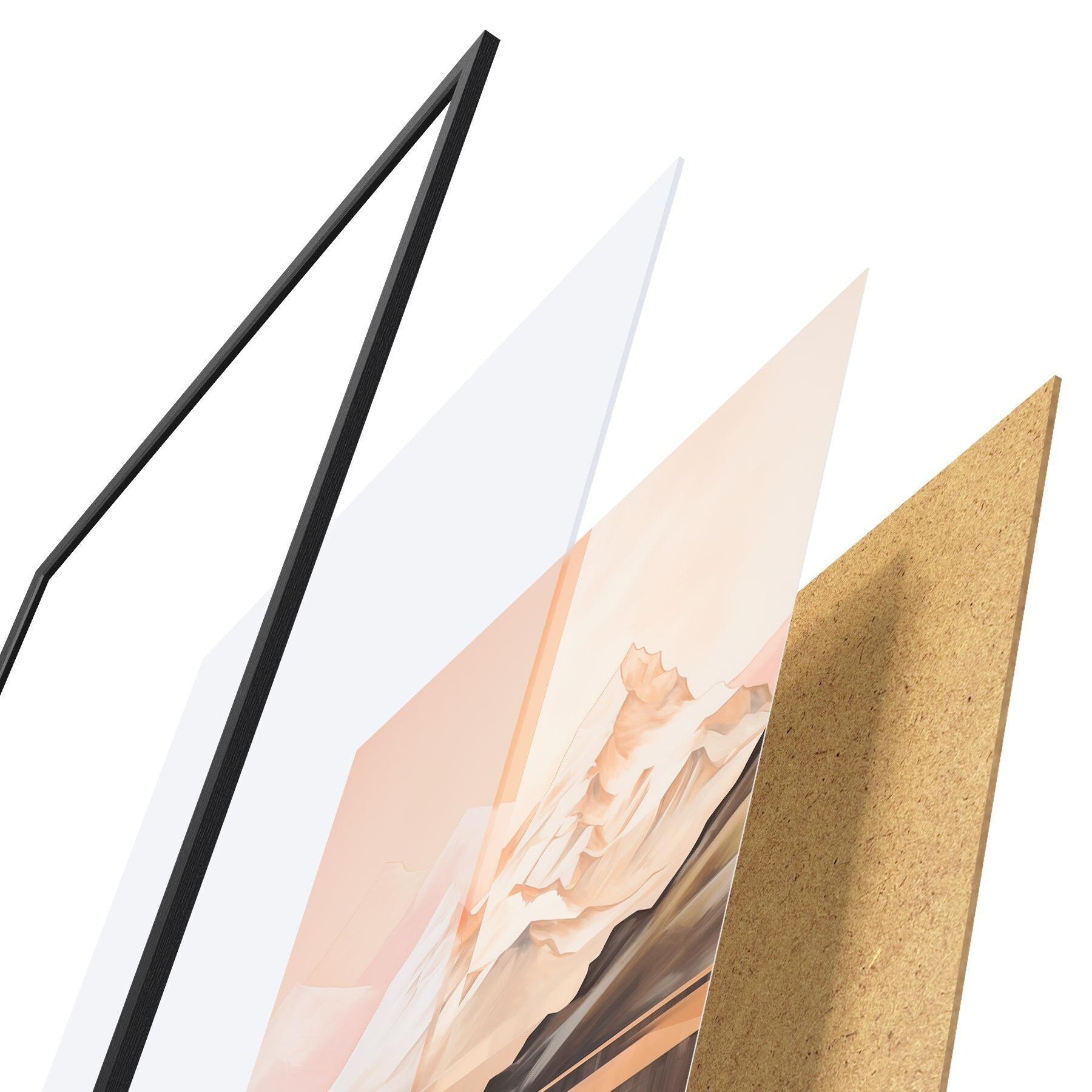 L’affiche encadrée est composée d’un cadre, d’un plexiglas, d’une image imprimée et d’un support en aggloméré. Elle est prête à être accrochée au mur grâce aux fixations situées à l’arrière.