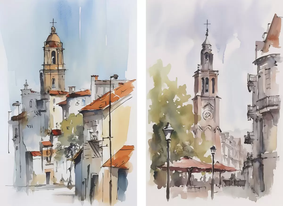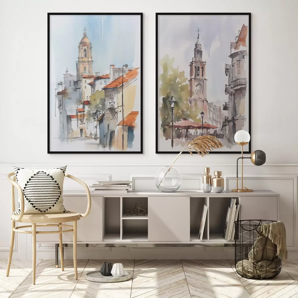 Poster Aquarelle imitant un paysage urbain Nr d00832