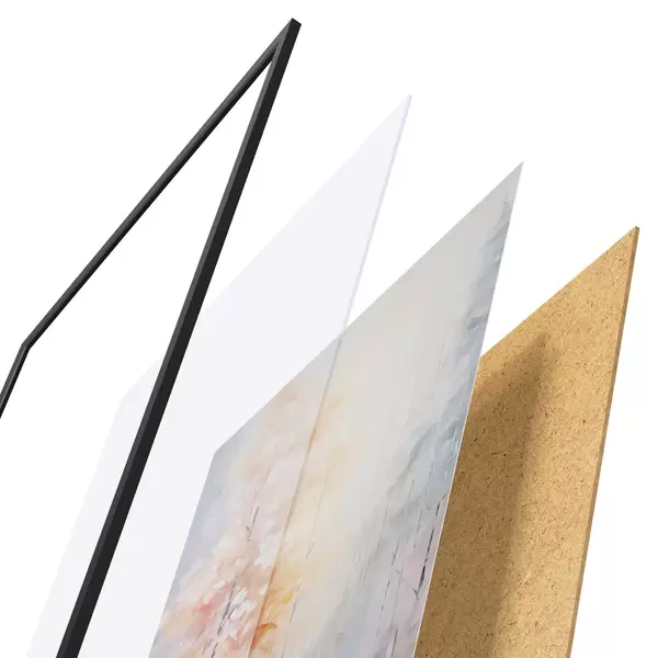 L’affiche encadrée est composée d’un cadre, d’un plexiglas, d’une image imprimée et d’un support en aggloméré. Elle est prête à être accrochée au mur grâce aux fixations situées à l’arrière.