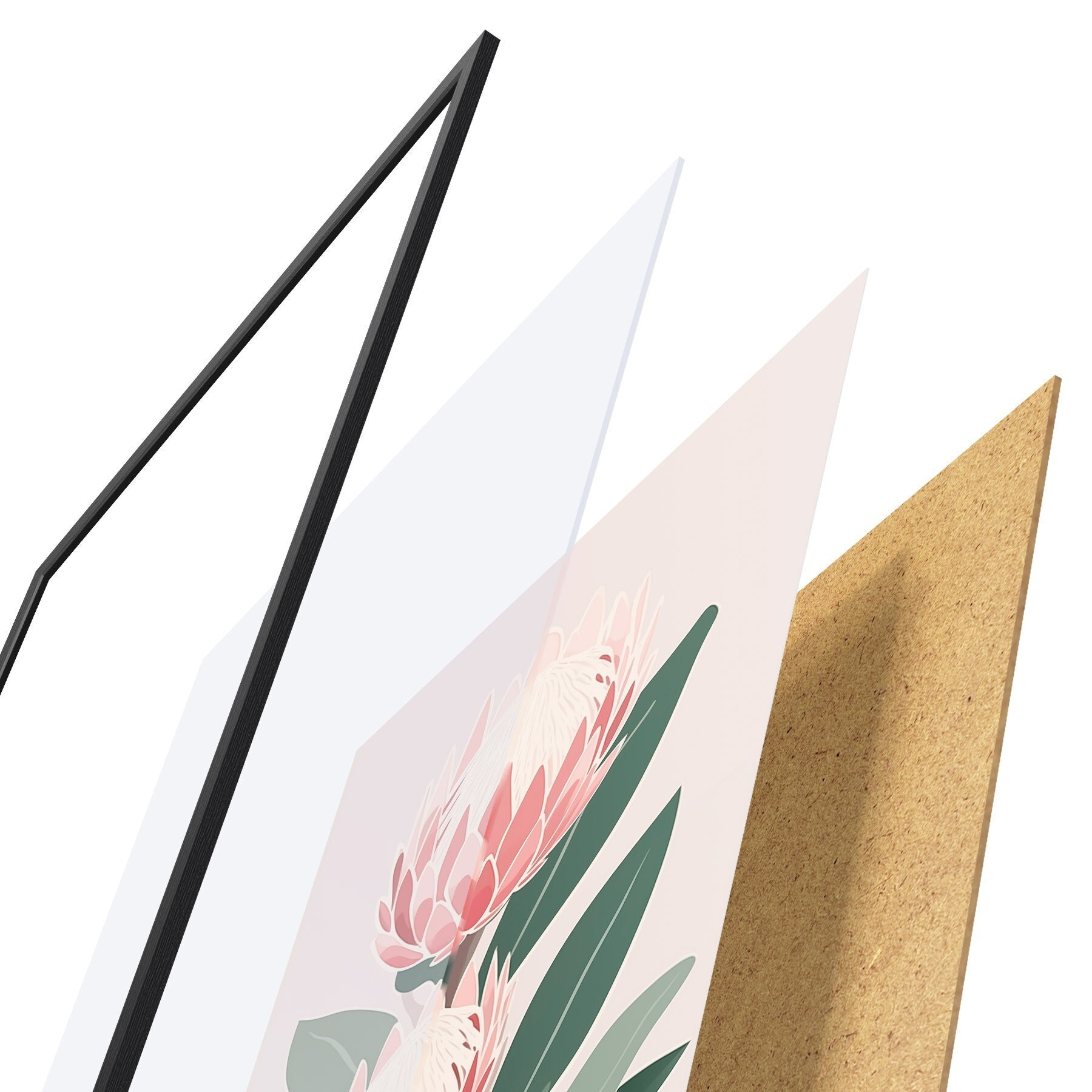 L’affiche encadrée est composée d’un cadre, d’un plexiglas, d’une image imprimée et d’un support en aggloméré. Elle est prête à être accrochée au mur grâce aux fixations situées à l’arrière.