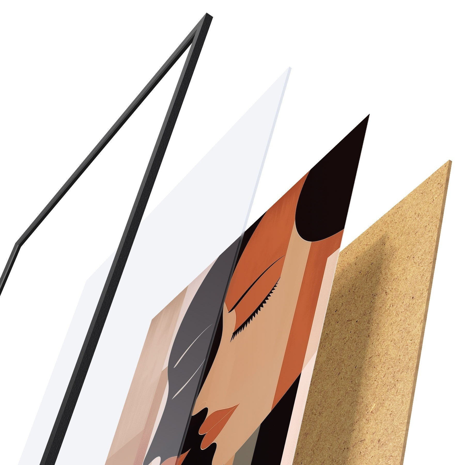 L’affiche encadrée est composée d’un cadre, d’un plexiglas, d’une image imprimée et d’un support en aggloméré. Elle est prête à être accrochée au mur grâce aux fixations situées à l’arrière.