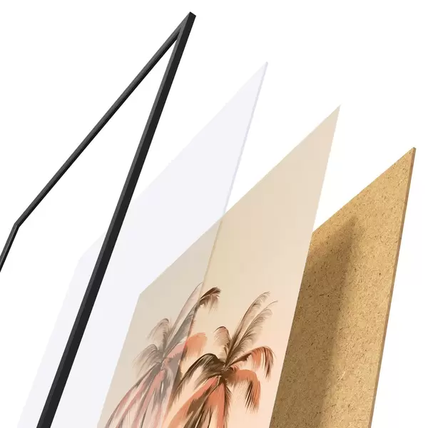 L’affiche encadrée est composée d’un cadre, d’un plexiglas, d’une image imprimée et d’un support en aggloméré. Elle est prête à être accrochée au mur grâce aux fixations situées à l’arrière.