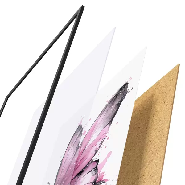 L’affiche encadrée est composée d’un cadre, d’un plexiglas, d’une image imprimée et d’un support en aggloméré. Elle est prête à être accrochée au mur grâce aux fixations situées à l’arrière.