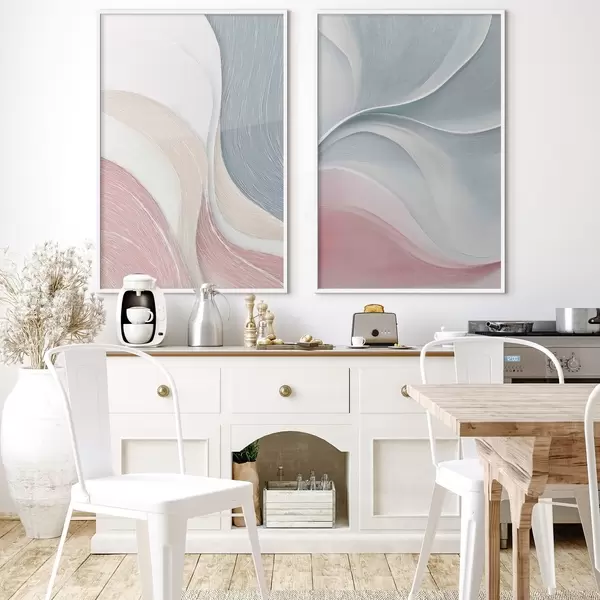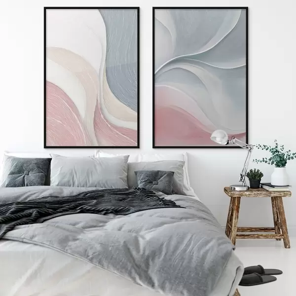 Poster Vagues abstraites dans les tons rose-beige-bleu Nr d00874