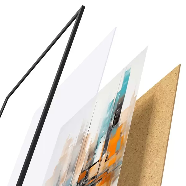 L’affiche encadrée est composée d’un cadre, d’un plexiglas, d’une image imprimée et d’un support en aggloméré. Elle est prête à être accrochée au mur grâce aux fixations situées à l’arrière.