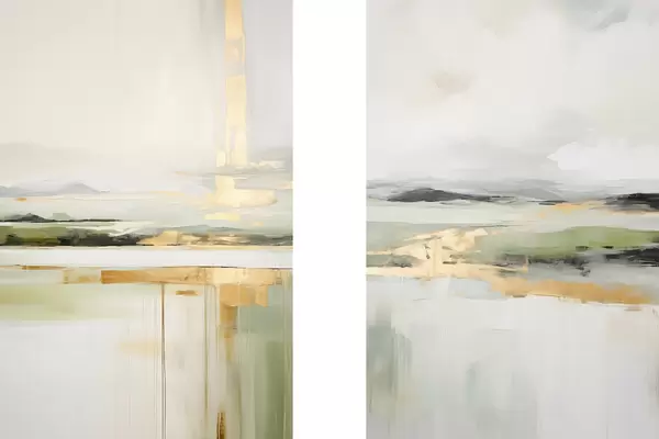 Poster Paysage abstrait avec des accents jaunes, une composition minimaliste de terre, d'eau et de ciel, avec des couleurs douces Nr d00877