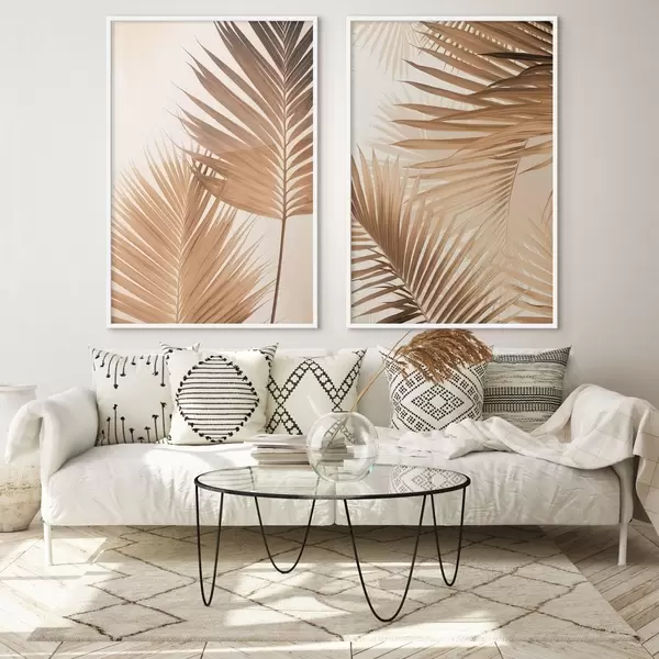 Poster Feuilles de palmier dans des tons bruns, fond neutre, style minimaliste, éclairage naturel, ambiance tropicale Nr d00880