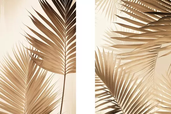 Poster Feuilles de palmier dans des tons bruns, fond neutre, style minimaliste, éclairage naturel, ambiance tropicale Nr d00880