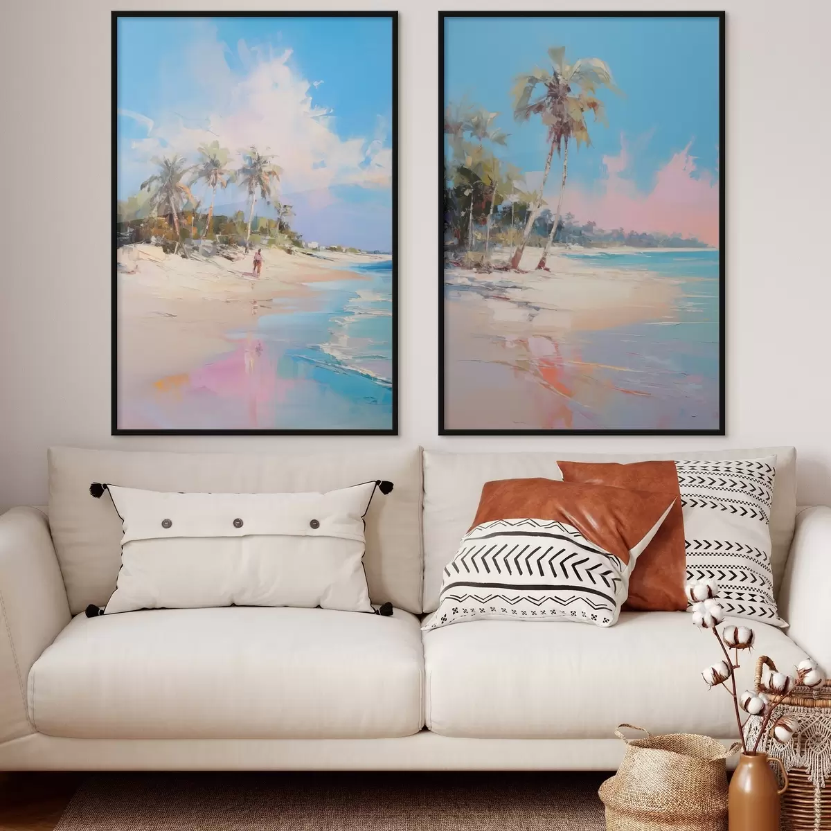 Poster Paysage abstrait, une plage avec des palmiers, une journée ensoleillée avec un ciel bleu et quelques nuages d00885